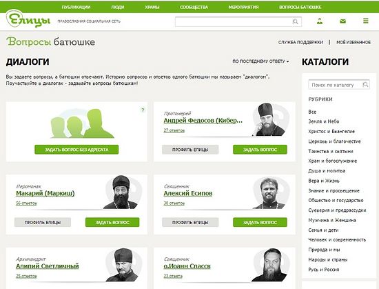 Православная социальная сеть «Елицы» запускает сервис для общения со священниками в формате «вопрос-ответ». Новая услуга появилась по запросу пользователей сети, число которых на сегодняшний день составляет уже 25 тысяч человек.