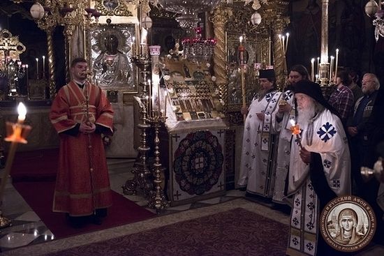 Бдение возглавил по благословению Святейшего Патриарха Кирилла митрополит Волоколамский Илларион. Акафистное пение Пресвятой Богородице, являющейся Игуменией Святой Афонской Горы, совершил архиепископ Сергиево-Посадский Феогност с собором духовенства из числа гостей и братии обители.