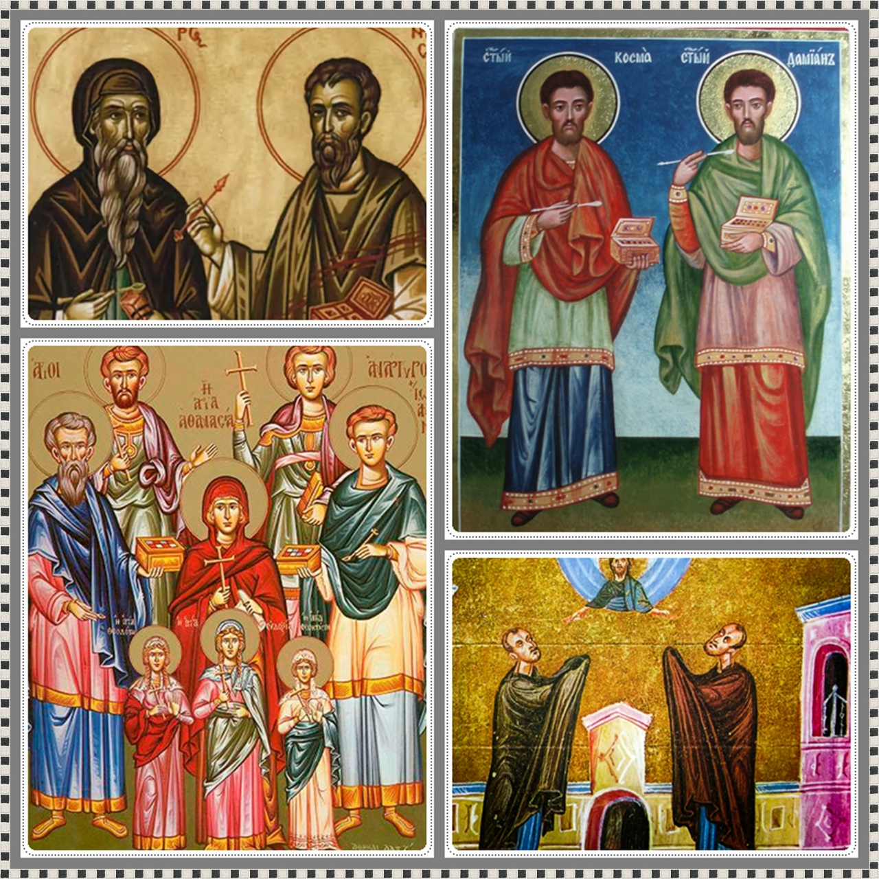 Ин тропарь, глас 5Святи́и сла́внии Ки́ре и Иоа́нне,/ безсре́бреницы, му́ченицы и чудотво́рцы,/ милосе́рдием свои́м, я́ко стено́ю необори́мою, нас огради́те от всех бед/ и от враго́в ви́димых и неви́димых сохрани́те// непреста́нною ва́шею моли́твою ко Го́споду.