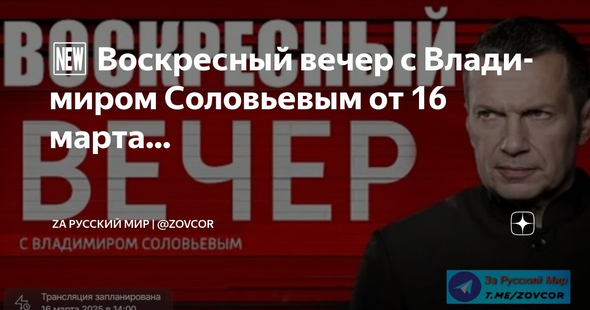 Автор | Тема: Воскресный вечер с Владимиром Соловьевым. Эфир от 16.03.2025 (Прочитано 1749 раз) |