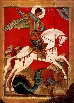 Олицетворение ПобедыОн повторил подвиг своего небесного покровителя, поразившего копьем дракона: во многом именно благодаря русскому победоносцу Георгию было уничтожено самое опасное для человечества зло ХХ века – фашизм. К сожалению, очередной юбилей великого русского полководца – 110-летие со дня рождения – прошел в России скромно. Но о Георгии Константиновиче Жукове будут не раз, конечно же, с благодарностью говорить на проходящих ныне торжествах, посвященных 65-летию разгрома гитлеровцев под Москвой, в котором легендарный маршал сыграл решающую роль. Имя и судьба Портрет маршала Г. К. Жукова работы П. КоринаУже в самом выборе его имени сказался Промысл Божий. Будущий великий полководец родился 19 ноября (2 декабря по новому стилю; в официальной биографии неверно указывается 1 декабря, по расчету на XIX век) 1896 года в деревне Стрелковке Калужской губернии в бедной крестьянской семье Жуковых. А 20 ноября в старинной Никольской церкви села Угодский Завод младенца крестили. Священник Василий (Всесвятский), опуская его в купель, нарек мальчика Георгием в честь святого великомученика и победоносца Георгия, память которого отмечается 26 числа того же месяца. В 13 лет Георгий уже был готов на самоотвержение: не задумываясь, кинулся в пылающий от пожара дом, чтобы вытащить оттуда своих односельчан – больную старуху и детей. Господь сохранял Жукова для великих дел. В 1918 году по Промыслу Божиему волостной врач Николай, сын священника, крестившего Жукова в жизнь вечную, спас ему жизнь земную, когда тот дважды болел тифом – сначала сыпным, затем возвратным. Сам же Николай стал жертвой этой болезни. Еще с детских лет большое влияние на формирование мировоззрения будущего полководца оказывали окружавшие его простые русские люди, которые приобщили его к таким христианским ценностям, как любовь к ближнему, гостеприимство, нищелюбие. Не затерялся Жуков и в Москве, куда перебрался подростком. Всем, данным ему от Бога: умом, талантом, силой, любовью к людям и Отечеству – Жуков сумел распорядиться рачительно, как в евангельской притче о талантах. И, видя его усердие, не оставляли Георгия Константиновича своим попечением по велению Божиему небесный покровитель – великомученик и победоносец Георгий и ангел-хранитель. Встретив его однажды в первопрестольной на дне рождения у общих знакомых, писатель Михаил Булгаков сказал: «Чеховская фамилия… Книгочей… Большое будущее». Целеустремленность, усердие, воинский дух даровали Георгию Константиновичу его небесным покровителем. А выбор профессии и то, что он стал великим полководцем, маршалом Победы, было, очевидно, предопределено: ведь имя таинственно связывает человека с «его» святым. Вот что об этом совпадении думали и писали маршалу Жукову советские люди: «Дорогой Георгий Константинович! Когда Берлин взяли, недаром Георгия Победоносца день на Пасху был. День вашего ангела! Старинный русский праздник. Как бы хотелось ваши именины устроить на этот день. Георгий Победоносец дракона уничтожил, и вы, Георгий, уничтожайте драконов нашей жизни – гитлеров и разных берий, а много их еще в России... За вас мы молим Бога каждый день – да даст Он вам здоровья, мудрость, силу на радость жизни нашей, победу над врагами». Дочь полководца Мария Георгиевна ЖуковаБережно собирает такие письма и свидетельства того, 