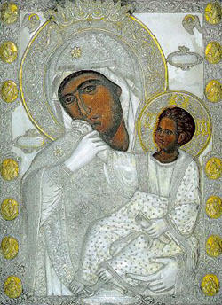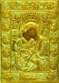 Иконы Афона: «Геронтисса» («Герондисса», «Старица»)Празднование 4 (17) апреля и 2 (15) декабря Чудотворный образ Пресвятой Богородицы Геронтисса1 находится в монастыре Пантократор на Святой Горе Афон. В точности о происхождении иконы мы не знаем. Но предположительно чудотворный образ является даром Пантократору первостроителя этой обители византийского императора Алексея I Комнина. Некоторые учёные полагают, что «Геронтисса» – список с чтимой мозаичной иконы Пресвятой Богородицы «Скоропослушница» из константинопольского монастыря Пантократор. Согласно древнему монастырскому преданию, первое чудо от «Геронтиссы» на Святой Горе Афон произошло во время строительства будущего монастыря, которое проводилось примерно в пятистах метрах от современных построек. Однажды ночью и икона, и все инструменты строителей пропали, а утром были найдены на месте современного расположения монастыря. Так повторялось несколько раз, пока наконец не стало ясно, что Сама Пресвятая Владычица избирает именно то место для устройства Своей обители. Название иконы, которое переводится с греческого как «Старица» или «Настоятельница», и указывает на духовное главенство над монастырём Пантократор Самой Божией Матери. История появления этого наименования связана с чудом.  Благочестивый игумен Пантократора заболел и, получив откровение о своём отшествии к Богу, попросил отслужить литургию и причастить его пречистых и животворящих Христовых Таин. Священник медлил и не торопился выполнить просьбу больного, пока не услышал исходящий от иконы Богоматери (которая тогда находилась в алтаре) голос, призывавший его незамедлительно исполнить волю игумена. Испуганный иеромонах поспешил выполнить повеление Богородицы: приступил к богослужению и причастил умирающего, после чего тот мирно отошёл ко Господу. С тех пор икону Пресвятой Богородицы стали называть «Геронтисса» (в связи с тем, что она покровительствует старцам (по-гречески старец – герондас)). Во времена турецкого владычества на Балканах монастырь подвергся нападению сарацин. Мусульманин, попытавшийся расколоть образ на щепы, чтобы кощунственно раскурить от них трубку, был поражён слепотой. Товарищи несчастного бросили икону в колодец неподалёку от обители. Там Геронтисса пролежала 80 лет, пока не была обретена афонскими монахами. Местонахождение святыни им было указано родственниками ослепшего святотатца, который раскаялся перед смертью и заповедал домочадцам отправиться на Афон и помочь монахам найти чудотворный образ. Исполняя его завещание, родственники прибыли на Святую Гору и указали инокам место, куда была брошена святая икона. Святыня была с честью вынута из колодца и торжественным крестным ходом отнесена в соборный храм обители.  Ещё одно поразительное чудо произошло в XVII веке. Однажды в монастыре случился столь сильный голод, что братия начала постепенно расходиться. Игумен убеждал всех просить о помощи Божию Матерь и сам усердно молился. И Пресвятая Богородица не посрамила его упования! Однажды утром братья заметили, что из кладовой, где находились в то время лишь пустые сосуды, льётся елей. Войдя внутрь, они были поражены: из одного кувшина масло непрерывно лилось через край. Иноки возблагодарили Пресвятую Заступницу за скорую помощь, а в память этого события на иконе был изо