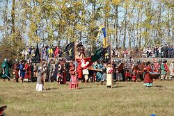На Куликовом поле празднуют 630 годовщину Куликовской битвы В течение нескольких дней Куликово поле будет жить по законам средневековья. На берегу Дона, у Татинских бродов раскинут свой средневековый лагерь современные ратоборцы из России и ближнего зарубежья. Русь и Орда спустя 6 веков вновь встретятся на поле битвы и познакомят гостей Куликова поля с культурой и воинскими традициями двух величайших армий. Место проведения военно-исторического фестиваля «Поле Куликово» выбрано не случайно. Через Татинские броды переправлялось объединенное русское войско накануне Куликовской битвы. Сегодня в дни празднования годовщин сражения здесь вновь царит дух средневековья. Костюмы и вооружение, доспехи и снаряжение, ремесла, традиционная кухня двух культур – все это объединяет многочисленную и многонациональную армию реконструкторов военной истории, возрождающих традиции русского воинства и Золотой Орды XIII-XIV вв. В XIV Международном военно-историческом фестивале «Поле Куликово» примут участие военно-исторические клубы из разных городов России и Украины. На Куликово поле приедут ратники из Москвы, Коломны, Калуги, Самары, Казани, Ижевска, Радужного, Чаплыгина, Тулы, Выборга, Зеленограда, Пензы, Пскова, Астрахани, Белгорода, Воронежа и других регионов. Участников фестиваля в этом году вновь ждут разнообразные турниры - пеших и конных лучников, по метанию сулиц и историческому фехтованию, конные состязания и ночные бугурты, конкурсы исторической кухни, костюма и доспеха. Для более полного погружения в историческую эпоху организаторами задуманы исторические маневры, в ходе которых, как и сотни лет назад, воинам придется решать различные тактические и боевые задачи. Реконструкторы проведут для участников и гостей фестиваля мастер-классы по обжигу керамики, выпечке хлеба, по изготовлению доспехов и костюма, по валянию войлока и крашению ткани, по плетению из лозы. В лагере ратников в дни фестиваля будет работать средневековая пивоварня, а на территории ярмарки развернется походная кузница. Представительниц военно-исторического движения ждут свои конкурсы по средневековой кухне, костюму и танцам. 18 сентября в День празднования 630-й годовщины Куликовской битвы около 300 конных и пеших воинов Руси и Орды воссоздадут для десятков тысяч гостей праздника эпизод Куликовской битвы с поединками и массовыми столкновениями конных и пеших бойцов. Зрителей ждет также парад-дефиле средневековых костюмов и доспехов, который представят конные воины Руси и Орды, пешие турниры. В лагере ратников конкурсная программа фестиваля продолжится. Ее завершит награждение победителей и ночной средневековый пир с играми и забавами у общего костра. Имена лучших ратоборцев будут внесены в Золотую книгу «Дружина Куликова поля». Международный военно-исторический фестиваль «Поле Куликово» - это одно из главных событий военно-исторического движения средневековой реконструкции России. За свою многолетнюю историю он прошел путь от масштабного мероприятия с широкими временными и географическими рамками, собирающего порядка 1000 реконструкторов, до тематического специализированного фестиваля делегаций клубов, реконструирующих воинов Руси и Золотой Орды времени Куликовской битвы. Отныне зрители и участники праздничных торжеств на Куликовом поле могут в
