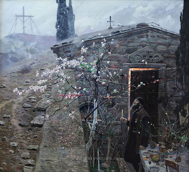 «С именем Святой Руси на устах он творил как художник»Слово протоиерея Артемия Владимирова о русском живописце Павле Рыженко, скончавшемся 16 июля … 16 июля 2014 года на 44-м году жизни скоропостижно скончался замечательный русский художник, прихожанин храма Всех Святых нашей обители, Павел Рыженко, заслуженный художник России. Это был русский человек. Богатырского склада, сильный духом, после Господа Бога он больше всего любил Россию. С именем Святой Руси на устах он творил как художник, часов не наблюдая. В возрождение своей Отчизны он непоколебимо верил, и именно этой глобальной теме посвящено всё его творчество. Павел не щадил себя и своих сил. Он сражался почти в одиночку. Видит Бог, не ради хлеба куса, но ради Иисуса. Трудно было найти человека бескорыстнее, чем он. Его бессмертный дух никогда не жил материальным, но искал горнего. Павел любил творить добро тайно, о чем я, как духовник, знаю доподлинно. Трудоспособность его удивляла всякого, кто имел возможность входить во «святая святых» художника - его студию, где Павел жил, ел, спал и творил. Будучи отцом, он воспитал своего сына патриотом, влюблённым в русскую историю. Этот юноша ещё послужит России, восставшей с колен и вышедшей из исторического небытия. Павел - художник-философ. Его полотна будят мысль, переносят в прошлое, устремляют к будущему. Они - о судьбах России. Мы не потеряли Павла, и он не ушёл от нас. «Что Бог творит, никому не говорит»... Верим, что Господь ввёл его в Свой нерукотворенный чертог и дал Своему рабу палитру с такими красками, каких на земле увидеть невозможно... <...> Протоиерей Артемий Владимиров, старший священник и духовник Алексеевского ставропигиального монастыряhttp://ruskline.ru/news_rl/2014/07/18/s_imenem_svyatoj_rusi_na_ustah_on_tvoril_kak_hudozhnik/
