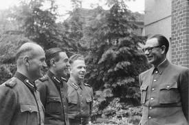 3. На территории Украины, сразу после прихода немцев началось формирование коллаборационистских национальных воинских частей, полицейских подразделений под различными названиями: «Всеукраинская Освободительная Армия» (ВОА), «Украинская Повстанческая Армия» (УПА), «Украинская Национальная Армия» (УНА). Формирования использовались для борьбы с частями Красной Армии и партизанами. Создание воинских частей возглавил предводитель Организации Украинских Националистов (ОУН) полковник Мельник и известный националист Степан Бандера. Последний еще в двадцатые годы занимал пост руководителя западно-украинской молодежи, а в 1932 г. стал заместителем председателя ОУН. За организацию убийства Министра внутренних дел Польши генерала Перацкого Бандера осужден к пожизненному заключению. Но в 1939 г., с приходом немцев в Варшаву, Бандера возвращается в Западную Украину, где создаёт отряды Украинской Повстанческой Армии (УПА). Отряды быстро вырастают в полки и дивизии. Вскоре УПА насчитывает более 200 тыс. человек в т.ч. 15 тыс. дивизии «Галичина». УПА ведет вооруженную борьбу с советскими партизанами и с Польской Армией Краевой на территории Западной Украины, Буковины и в лесах полесья Пинска.